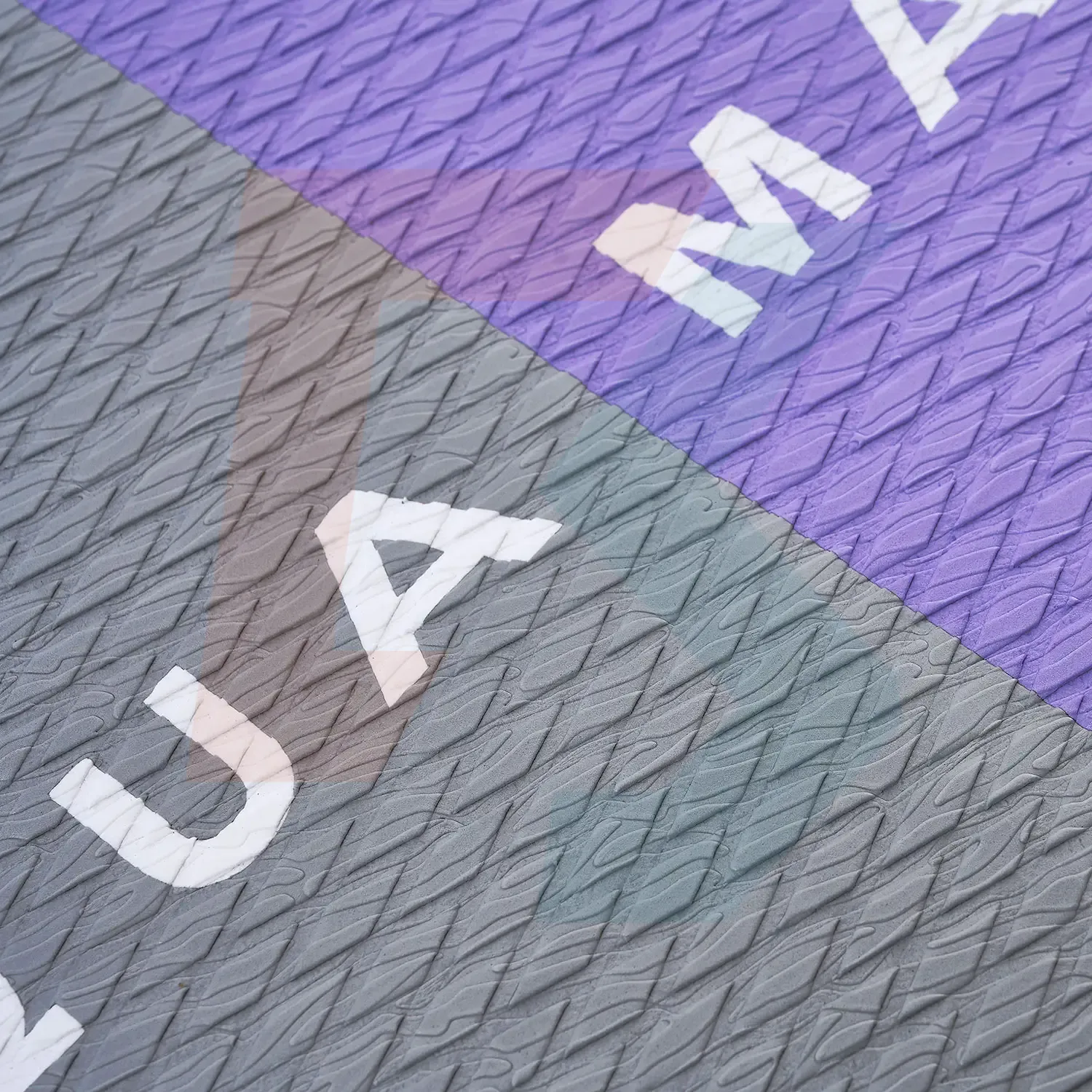 - Pianka EVA z rowkowanym wzorem falującego piasku łatwiej odprowadza wodę, a diamentowa faktura polepsza przyczepność.
