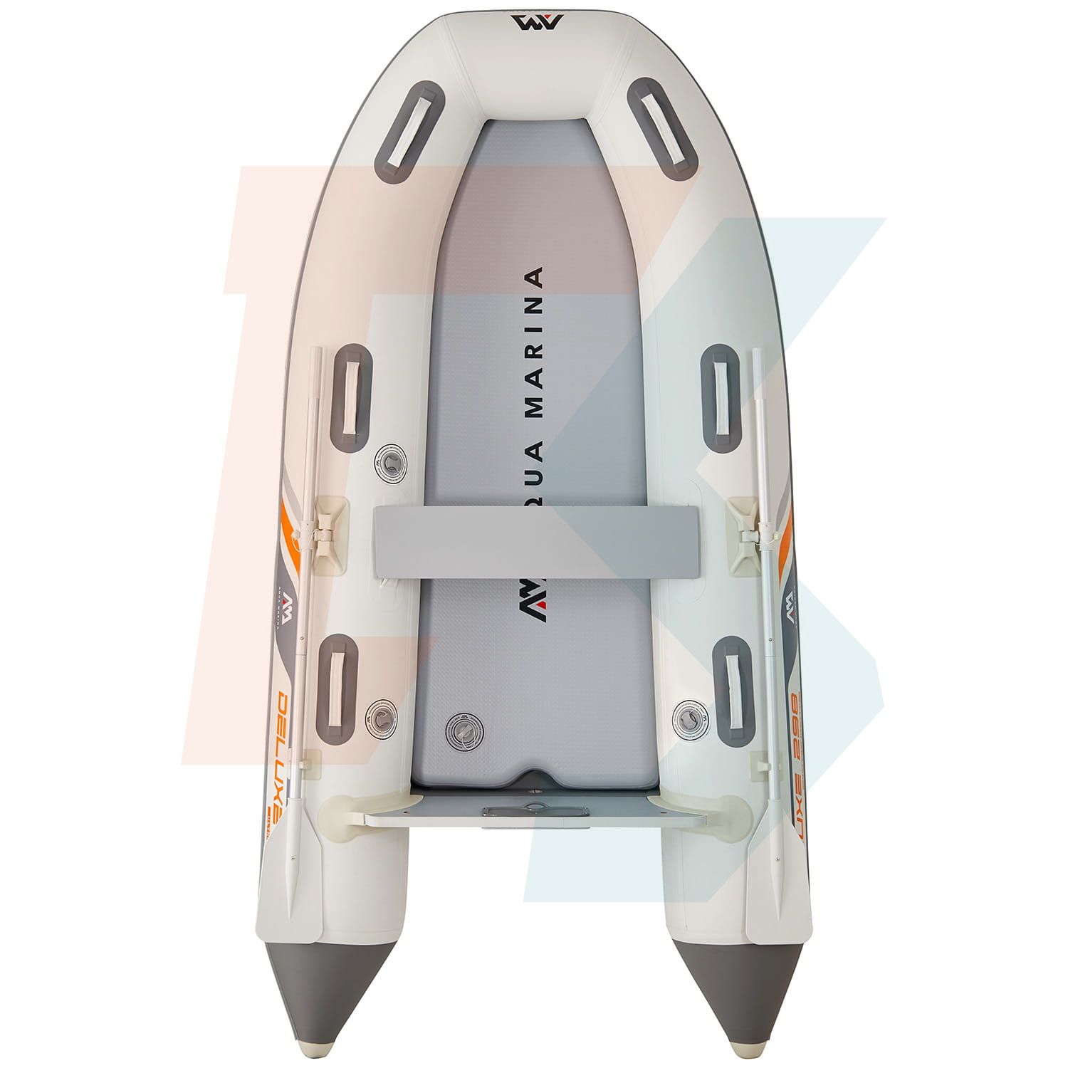 Dołączone do pontonu dwuczęściowe wiosła aluminiowe zapewniają nie tylko wygodę, ale i bezpieczeństwo użytkowania. Specjalnie zaprojektowane uchwyty na nadmuchiwanych burtach (dulki) umożliwiają trwałe i stabilne przymocowanie wioseł, co gwarantuje optymalny kąt wiosłowania. Komfortowa ławeczka pozwala na zachowanie odpowiedniej pozycji podczas pływania, co przekłada się na efektywność każdego ruchu wiosłem.