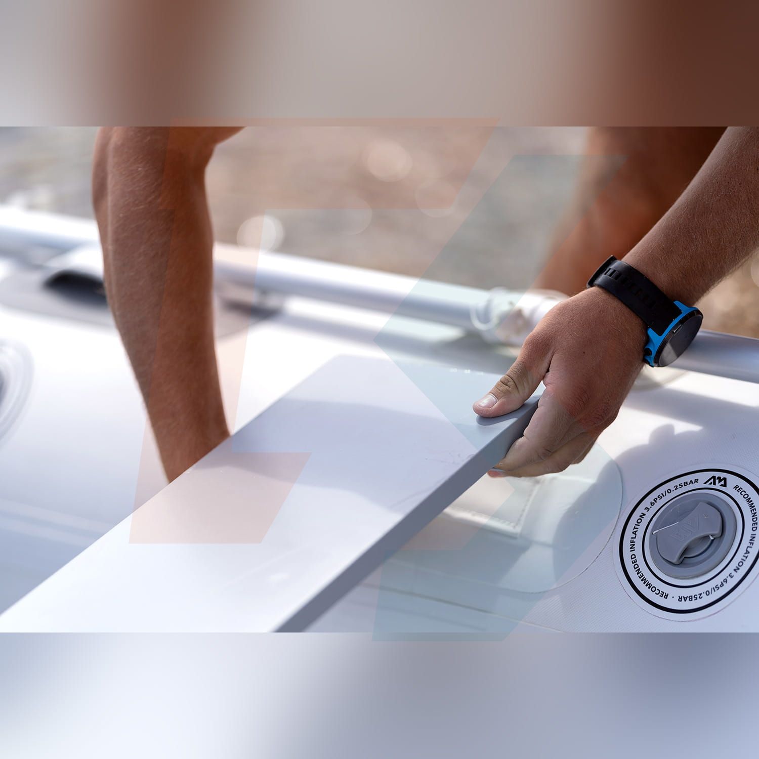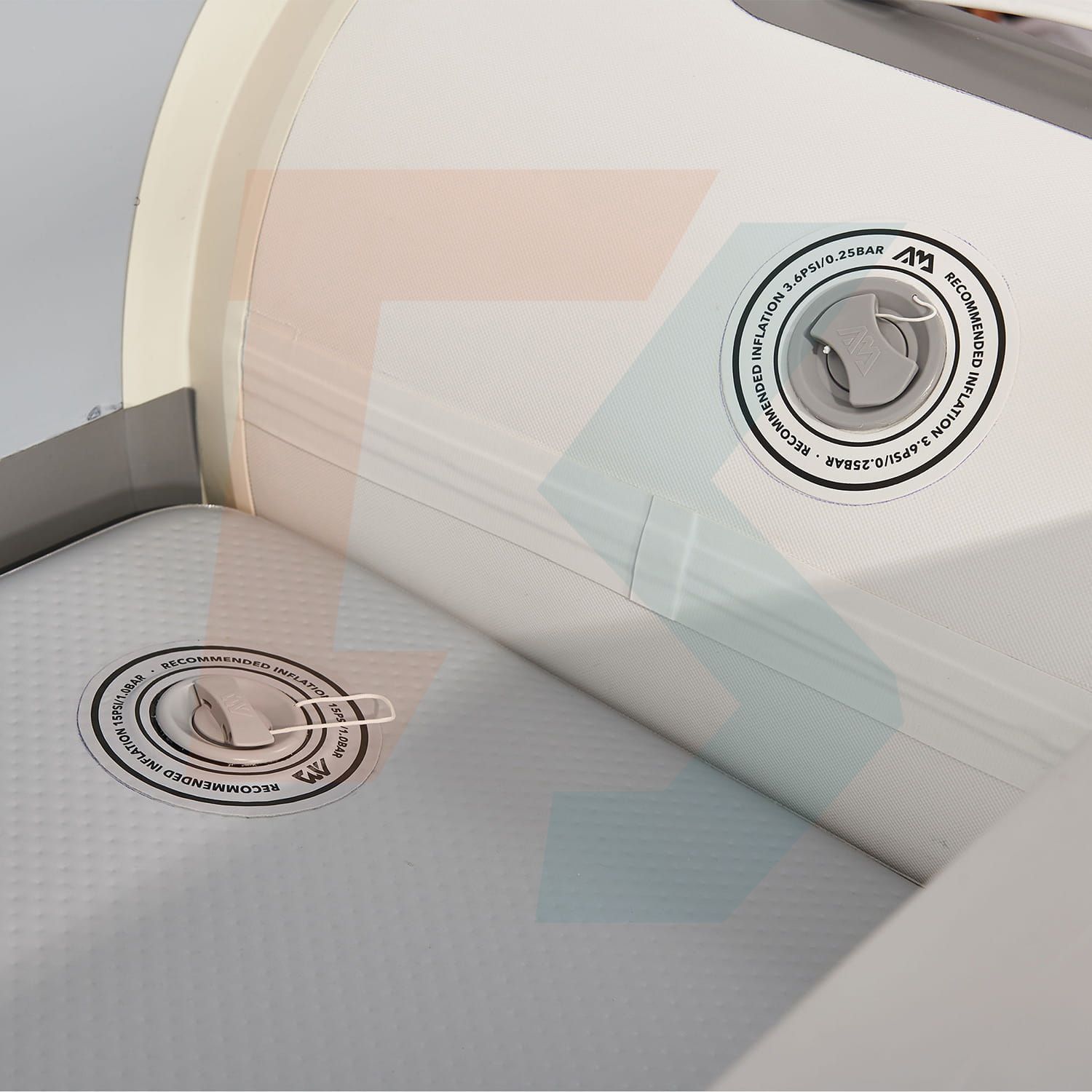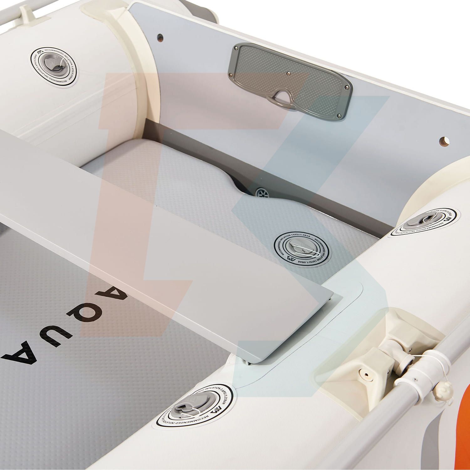 Mocne burty i podłoga są wyposażone w zawory wysokociśnieniowe. Podłogę, wykonaną w technologii Drop-Stitch, można napompować do 15 PSI (1 bar), co sprawia, że jest stabilna i sztywna. Każdą z burt można napełnić ciśnieniem 3,62 PSI (1/4 bara), co zapewnia dużą nośność i twardość, ale także odpowiednią elastyczność, która jest istotna przy kontakcie z brzegiem lub innymi jednostkami.