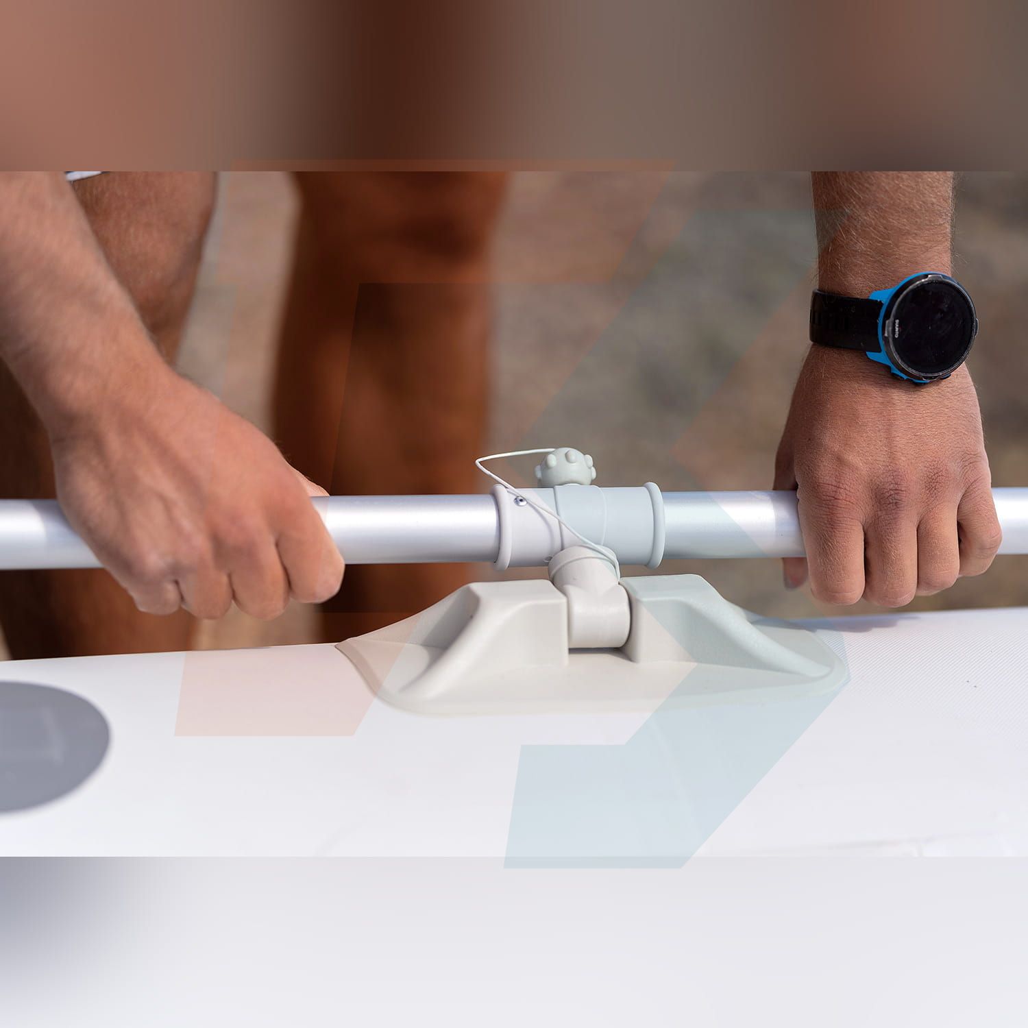 - Dwa aluminowe wiosła montowane w dulkach pontonu,